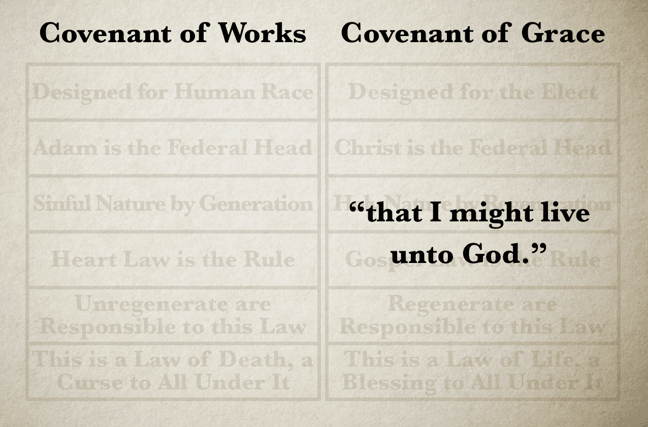 If the believer can go back to the Covenant of Works, and find his sanctification in the Heart Law, then Christ has died in vain. Of what value is the person and work of Christ, if He isn’t the complete Saviour, both for my justification, as well as my sanctification?