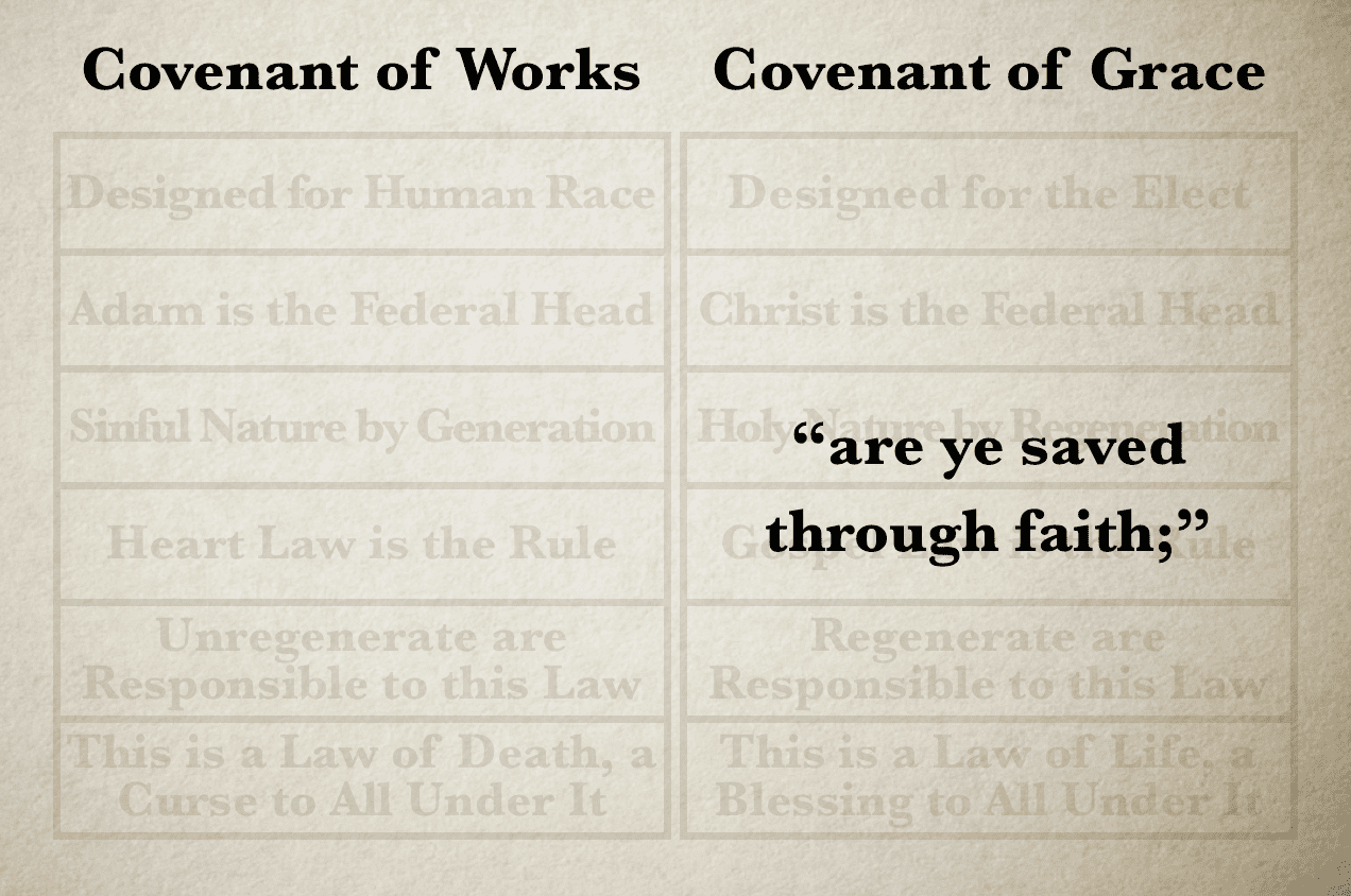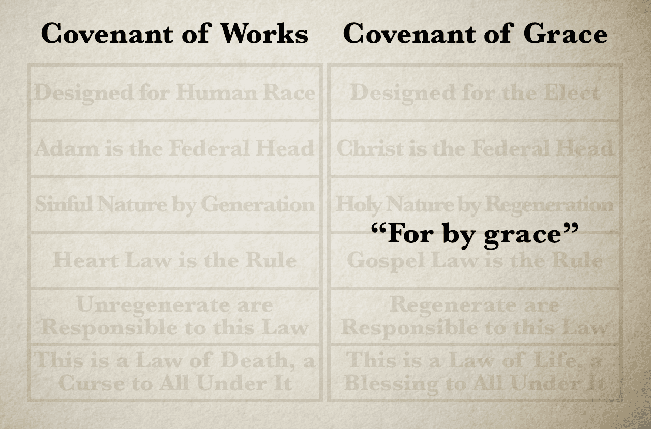 Not only the grace of God as a divine attribute, but the grace of God as an eternal covenant—the Covenant of Grace. It is by the gracious covenant that sinners are saved. How can one fail to see the framework of the gracious covenant in this text, after reading the first chapter of this Ephesian epistle?