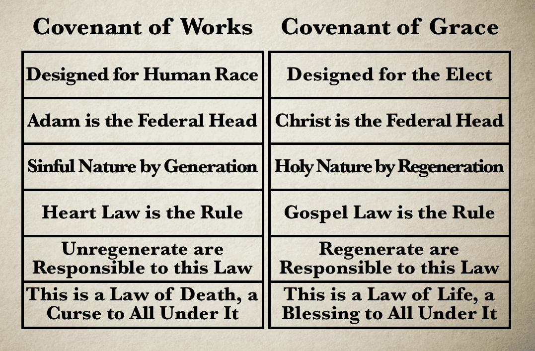So, to be clear, the Old Testament does not refer to the Covenant of Works, whereas the New Testament refers to the Covenant of Grace. Rather, the Covenant of Works was introduced to Adam in the garden of Eden, and has been renewed and administered in precisely the same way to every generation since. However, whereas the Covenant of Grace was also introduced to Adam in the garden, yet for the first 4,000 years (before the birth of Christ), it was administered only in prospect of what Christ would accomplish at Calvary—animal sacrifice, tabernacle and temple edifices and furnishings, symbolisms and ceremonies all pointed to the coming Messiah. But when the fulness of time was come, and the Father sent forth His Son, made of a woman, made under the Heart Law, to redeem His people that were under the Heart Law, a new administration of the gracious covenant was ushered forth, because by one offering Christ has perfected for ever His people that are sanctified. It is for this reason, regenerate sinners today have boldness to enter into the holiest by the blood of Jesus, by a new and living way, which He has consecrated for us. It is for this reason regenerate sinners may draw near with a true heart in full assurance of faith, having their hearts sprinkled from an evil conscience.