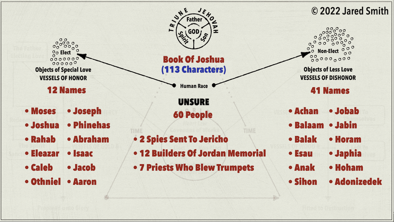 Twelve people belong to God’s elect—Moses, Joshua, Rahab, Eleazar, Caleb, Othniel, Joseph, Phinehas the priest, Abraham, Isaac, Jacob and Aaron.