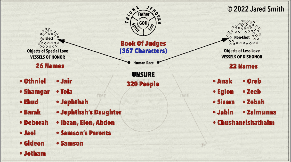 Before I close this study, allow me to briefly highlight how the characters of the book fit within the framework of sovereign grace. According to my count, there are more than 367 people recorded in the book of Judges.