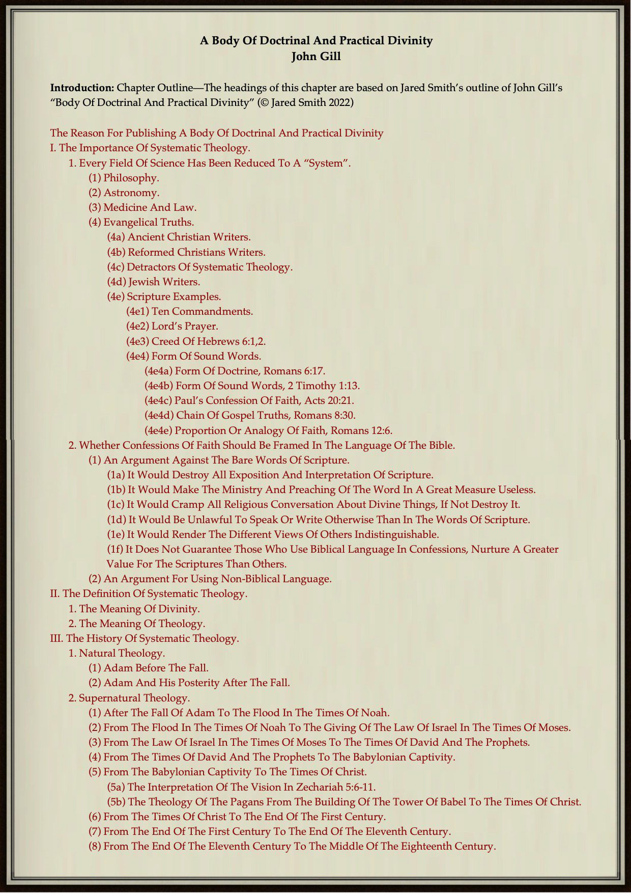 [Prepared by Jared Smith for his series of studies on Bible Doctrine]The Reason For Publishing A Body Of Doctrinal And Practical Divinity