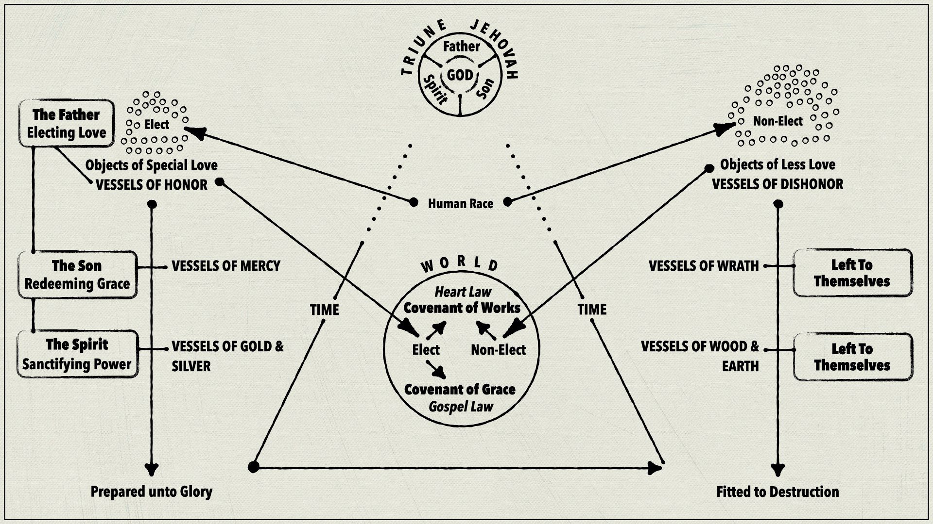 And so, I emphasize again, according to God’s masterplan for the ages, the human race is divided into two distinct groups—those set apart as objects of special love, and those set aside as objects of less love; those whom the Father has chosen to make vessels unto honor, and those whom the Father has chosen to make vessels unto dishonor; those who saved by the redeeming grace of Christ and made vessels of mercy, and those who are left in their sins and made vessels of wrath; those who are regenerated by the Spirit of God and made the vessels of gold and silver, and those who are left in their sins and made the vessels of wood and earth; those who are prepared unto glory, and those who are fitted to destruction. Or, as Tucker expresses it in the hymn, those who are sheep, heirs of grace and appointed to endless joy, and those who are goats, heirs of wrath and appointed to endless misery.