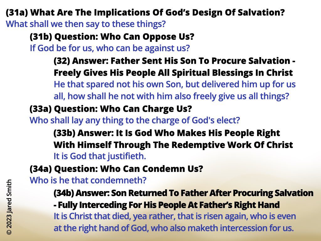 • This Study—(2) The regenerate sinners, under the authority of the covenant of grace, have their sins atoned for by Christ through God-justification. Looking at the CERTAINTY of God-Justification (Romans 8:28-39).