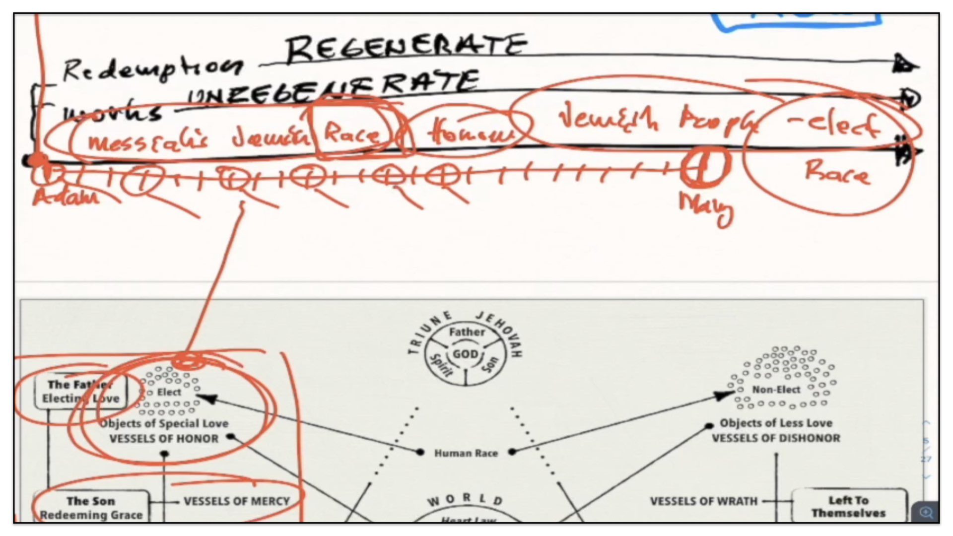 So this part of the statement is dealing with the Jewish people who were God’s elect based on their race, their biological lineage to the Messiah. Whereas this part of the statement is dealing with the spiritual, the spiritually elect people, based on grace. And this has to do with the spiritual covenants, in particular, that of the Covenant of Redemption.