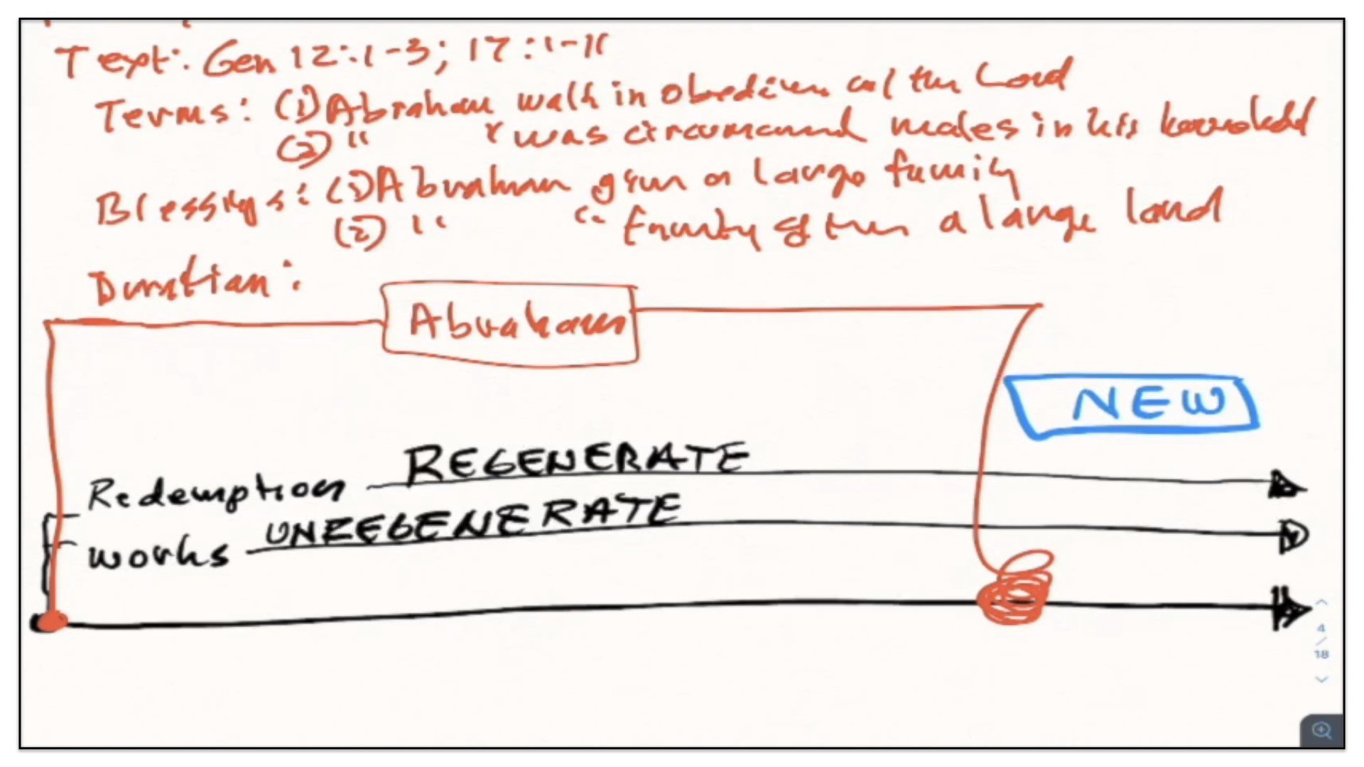 Now, having said this, I want to highlight for you a couple of things you’ll find in the text readings. First, you’ll find some terms, or conditions, placed upon this covenant. There’s a couple of them. The first of these conditions is that Abraham is commanded to walk in obedience with the Lord. That’s the first condition God places upon this covenant He makes with Abraham. Abraham is to walk before the Lord in obedience. And secondly, Abraham was to circumcise, or have circumcised, the various males in his household. And this is the introduction of circumcision which we read quite a bit about throughout the Old Testament scriptures and also the New. And those are the conditions placed upon this covenant.