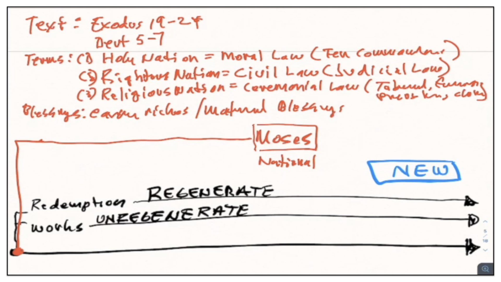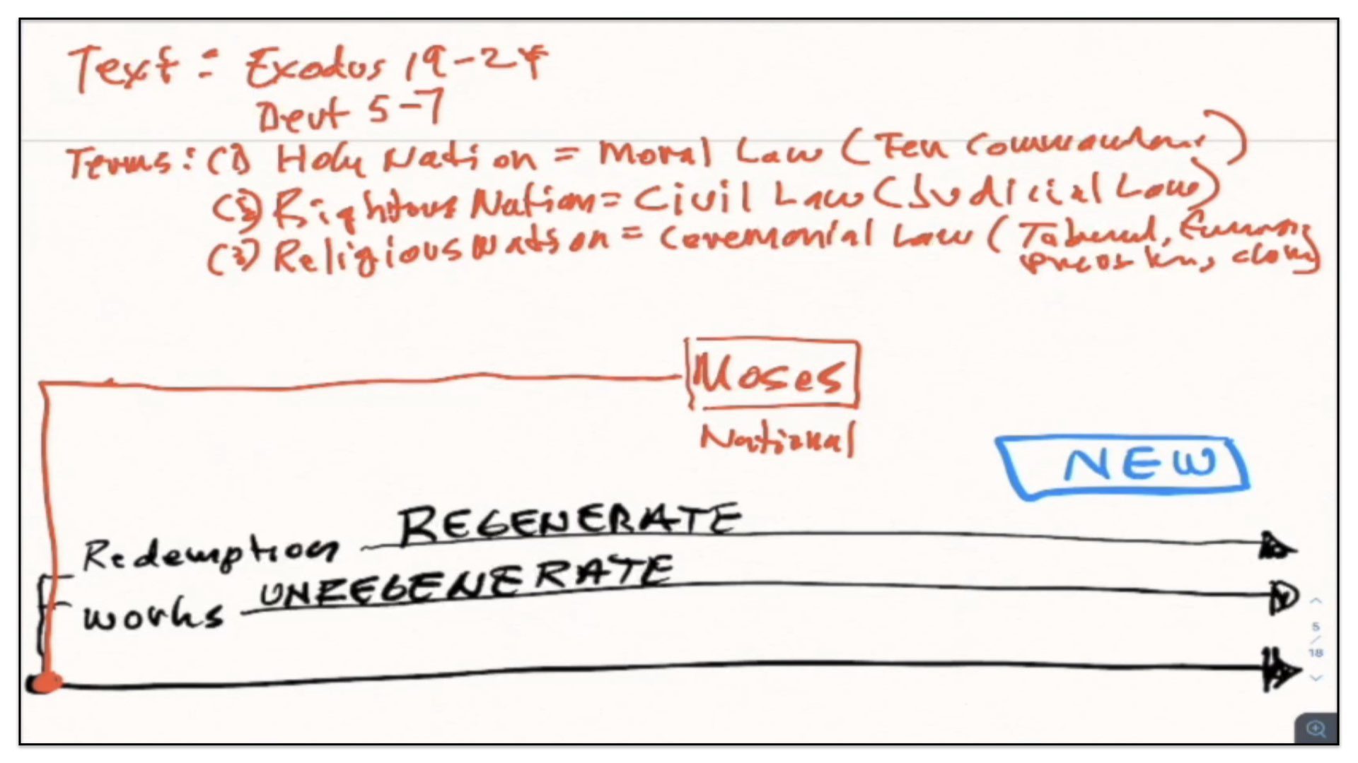 Watch this. Since God appointed the Jewish people to be a holy nation, so God gave to them a moral law, otherwise known as the Ten Commandments. Secondly, because God created the nation of Israel to be a righteous nation, He gave to them a civil law, otherwise known as the judicial law of the people. And thirdly, because God created the nation of Israel to be a religious nation, He gave to them a ceremonial law, and that of course is where you get the teachings on the tabernacle, the furnishings, the priesthood, the clothings, the various sacrifices and ceremonies, etc. All of that falls under the ceremonial law. And these are the terms, you see, of the Mosaic Covenant. This is what was required of the Jewish people as a nation to follow to obey. Well, those are the terms.