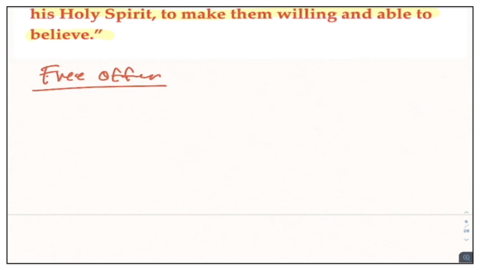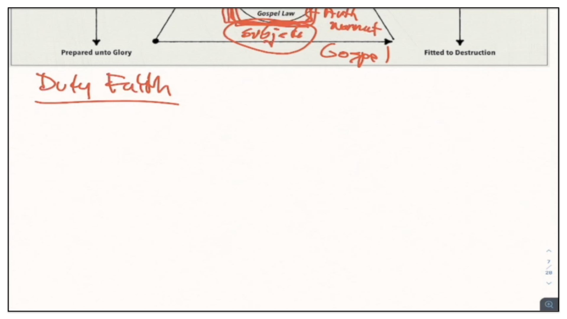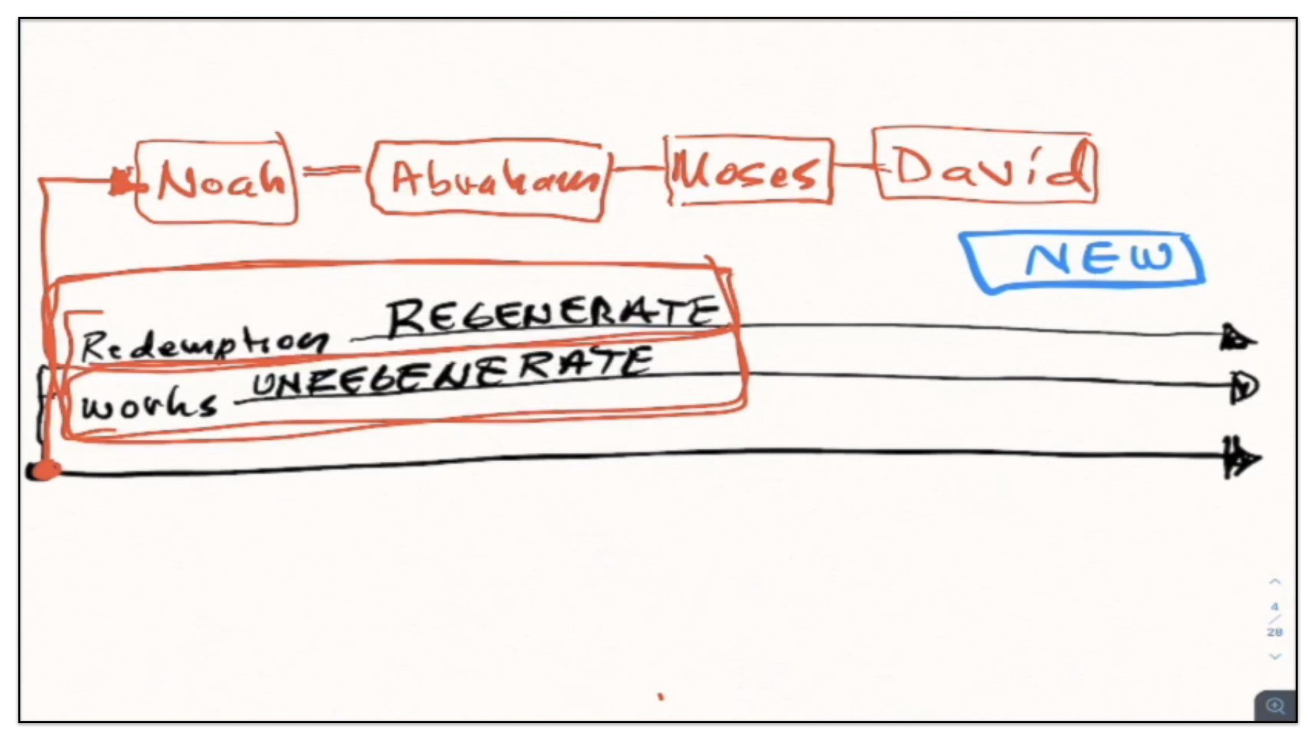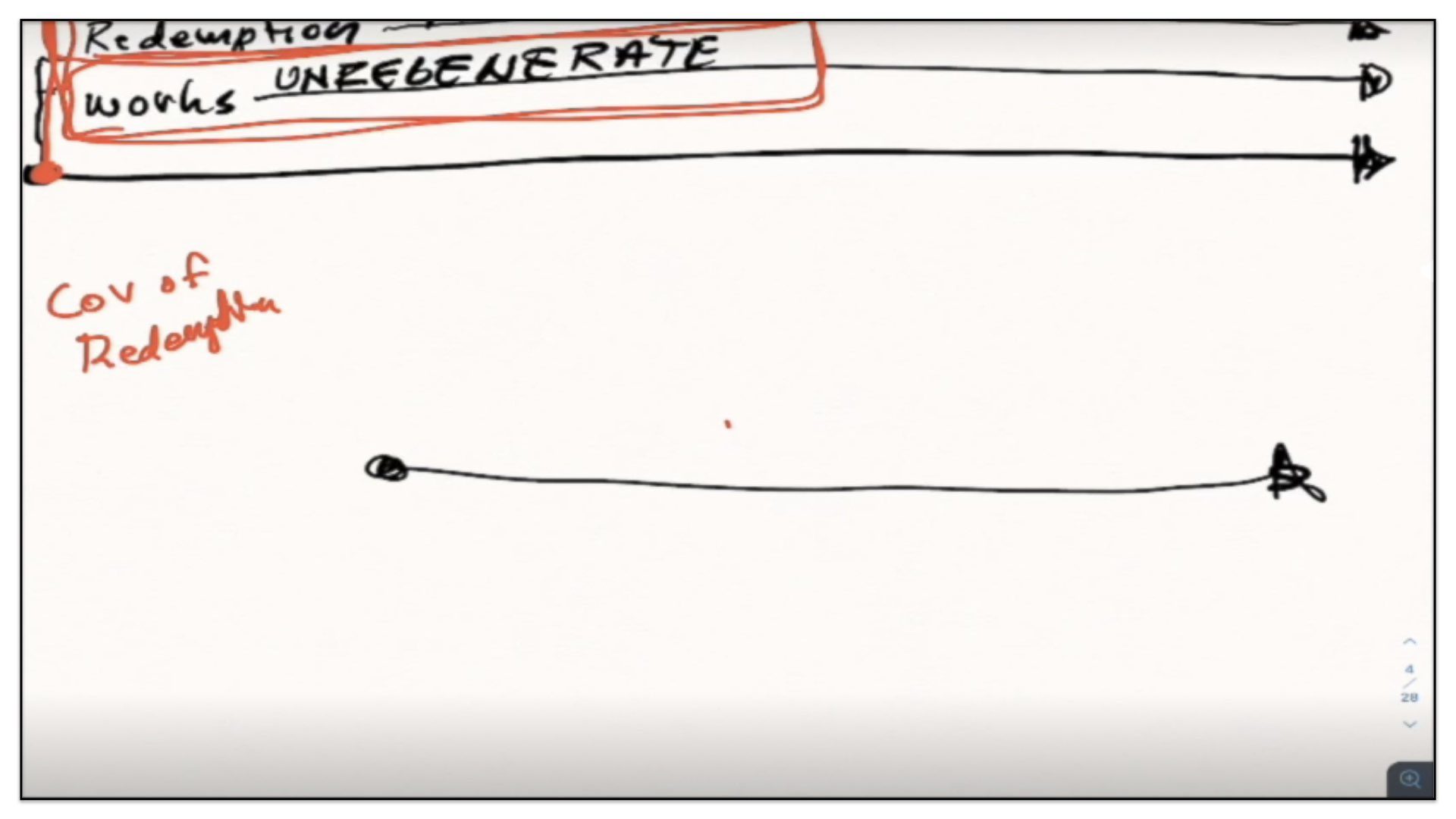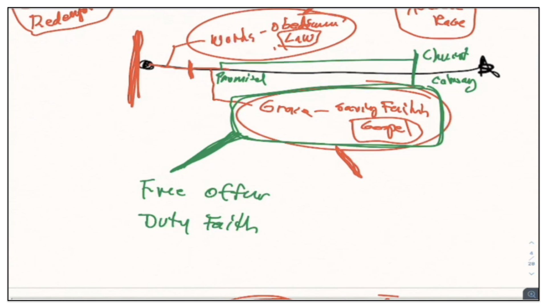 Therefore—and I close now my final thoughts on this teaching—therefore our view is this. This is the basic understanding of the Framework of Sovereign Grace. Because the messy notes above I can’t use those now. I have to just draw this out basic. So watch.