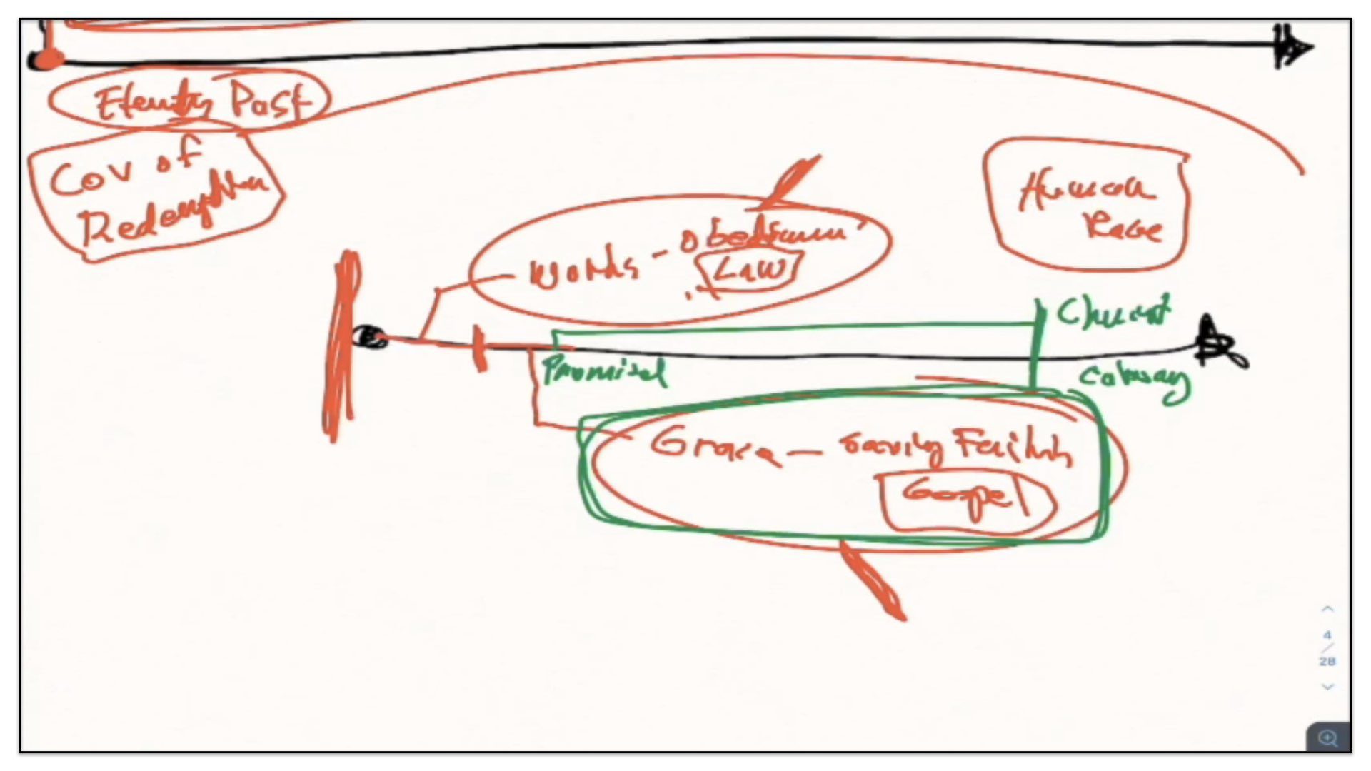 Now you see, that’s my understanding of the Covenant of Redemption and the Covenant of Grace. And if I bring you back now to the main notes for this study, this is the Covenant of Redemption and the Covenant of Works and how they fit together in the grand scheme of God’s master plan for the ages.