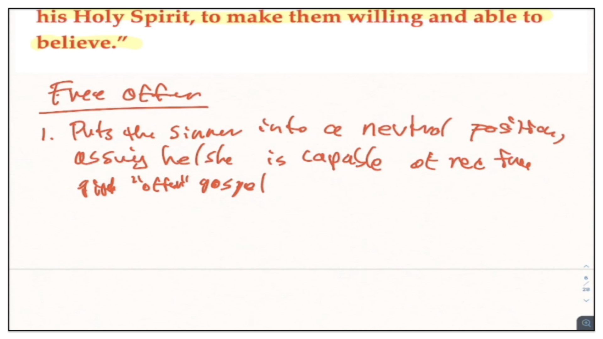 It Puts The Unregenerate Sinner Into A Neutral Position, Assuming He/She Is Capable Of Receiving This Free Gift Of God Through The Offer Of The Gospel