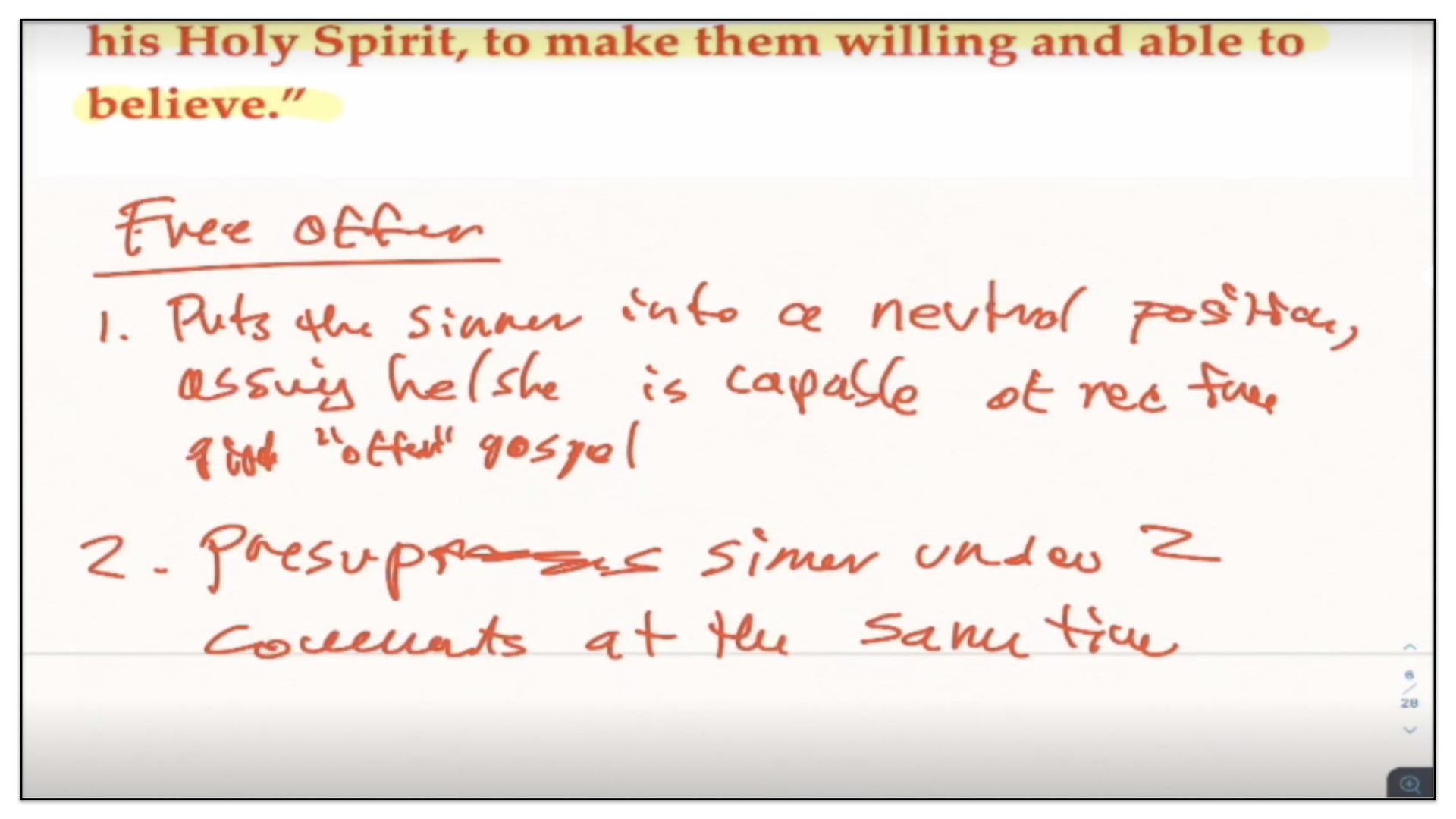 Now, what I like to do is highlight for you a couple of reasons why I disagree with this, with these false teachings of the free offer—I shouldn’t say, why I disagree with these false teachings; I should, let me rephrase it, why I disagree with these teachings, which then would mean I believe they’re false—why I believe these teachings are not in accordance with scripture or with this general concept of covenant theology.