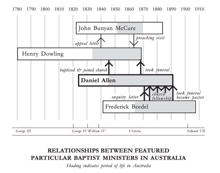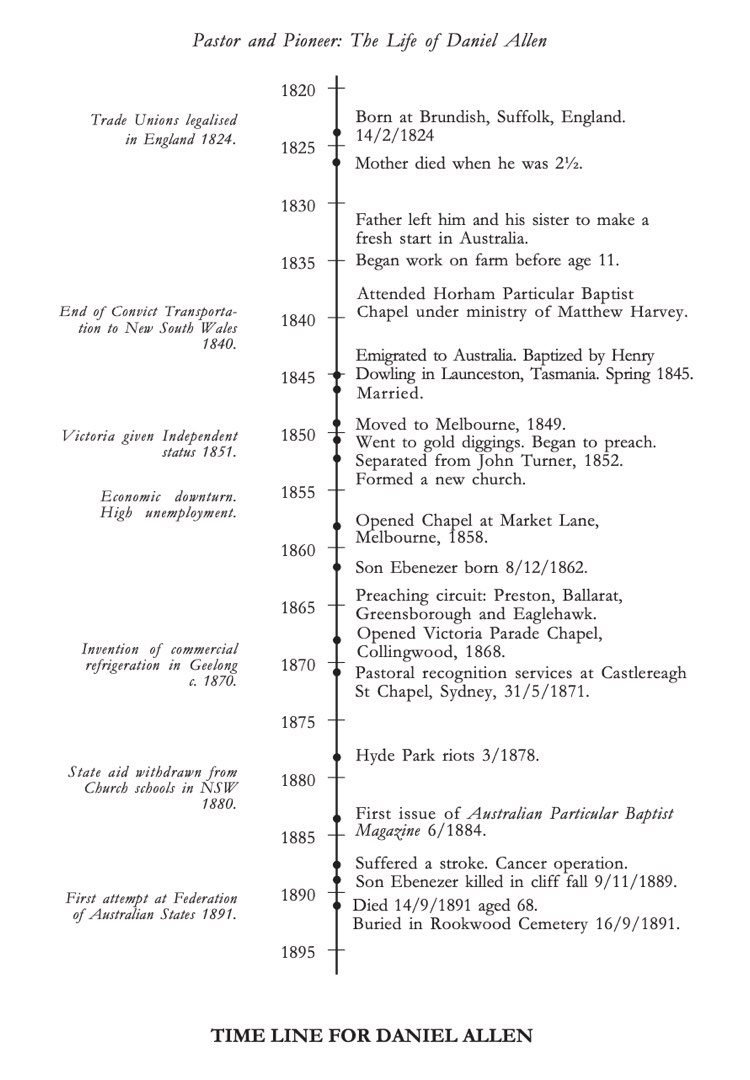 The bulk of this booklet consists of an edited version of the original biographical sketch written by Frederick Beedel, who succeeded Allen in his pastorate in Sydney after his death. It was published in 1901, with its full title as follows: Letters and other writings of the late Pastor Daniel Allen, Particular Baptist Church, Castlereagh Street, Sydney, and minister of the gospel for over forty years in Tasmania, Victoria, and New South Wales. With Memoir. It is just the latter part which has been extracted here.