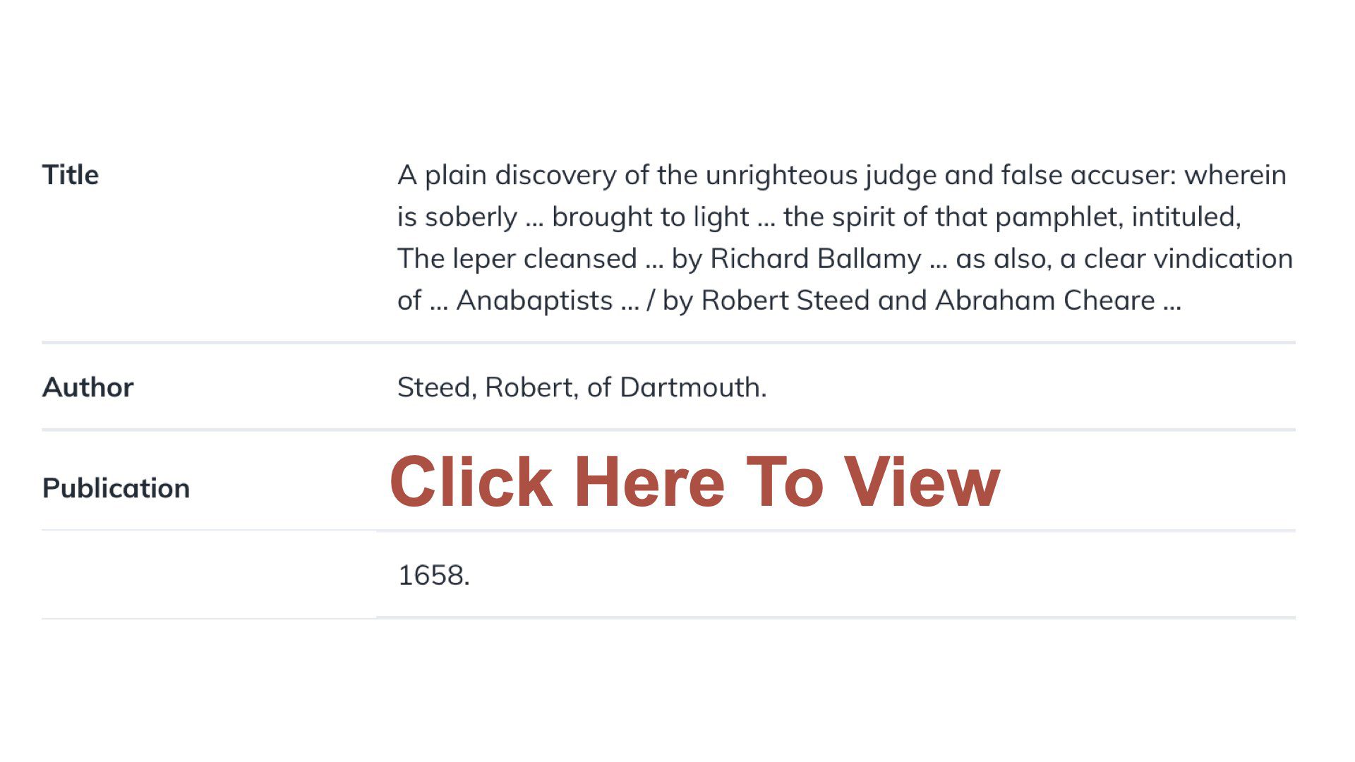 Robert Steed was a seventeenth century Particular Baptist preacher. He was co-pastor with Hanserd Knollys of the church meeting at Broken Warf. He continued in the position after Knollys’ death in 1691. He is one of the representatives who signed the 1689 Baptist Confession of Faith. He wrote a couple of books among which is: