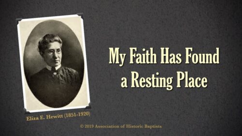 1 My faith has found a resting place, Not in device or creed; I trust the ever living One, His wounds for me shall plead. 2 Enough for me that Jesus saves, This ends my fear and doubt; A sinful soul I come to Him, He’ll never cast me out. 3 My heart is leaning on the Word, The living Word of God, Salvation by my Savior’s Name, Salvation through His blood. 4 My great Physician heals the sick, The lost He came to save; For me His precious blood He shed, For me His life He gave.